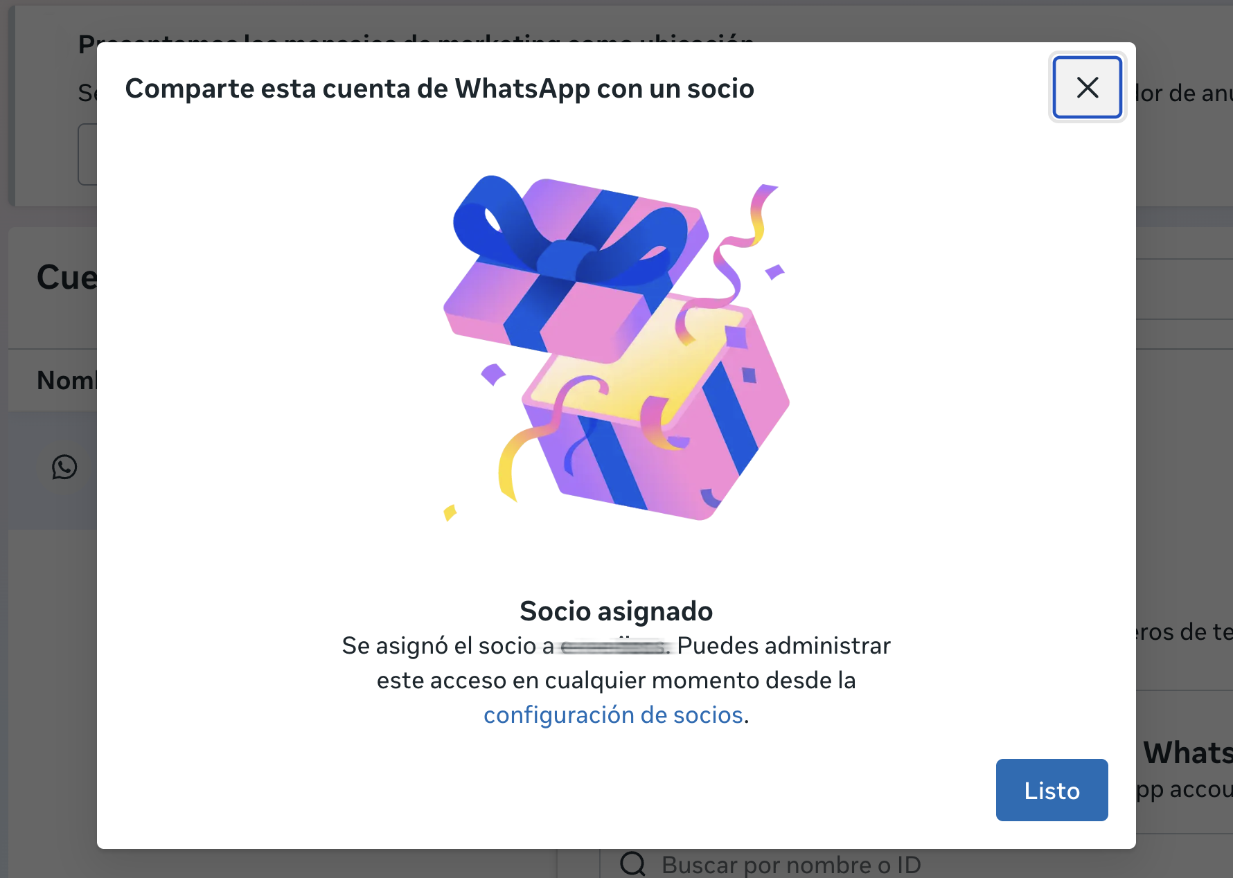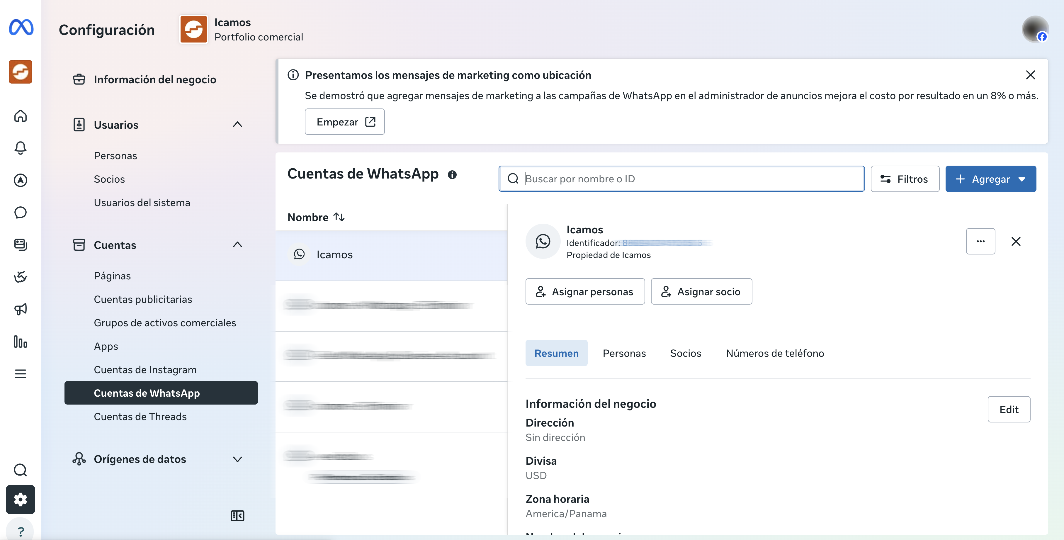 - Ingresa el Partner Business ID de Icamos: 281597462622116